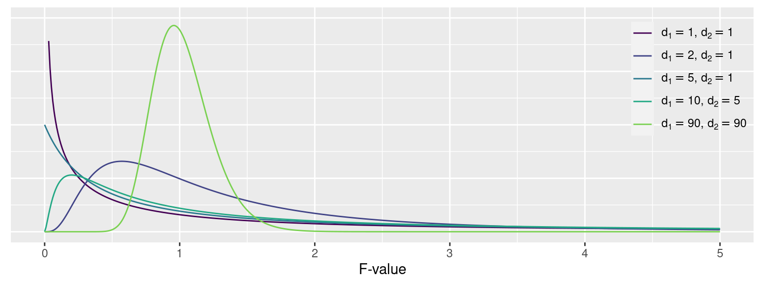 \[ P(x|d_1, d_2) = \frac{1}{\mathrm{B}\left(\frac{d_1}{2}, \frac{d_2}{2}\right)}\left(\frac{d_1}{d_2}\right)^{\left(\frac{d_1}{2}\right)}x^{\left(\frac{d_1}{2}-1\right)}\left(1+\frac{d_1}{d_2}x\right)^{\left(-\frac{d_1+d_2}{2}\right)} \]